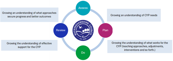 All professionals working with CYP play an essential role in applying the graduated approach. The approach is based on four key stages: Assess, Plan, Do, Review (APDR).